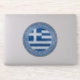 Greece flag with Greek key pattern distressed round design sticker. Add a touch of Greece to your home or office with this beautiful sticker design of the Greek flag.