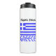 Greek flag and the word GREECE, below, in blue. The flag shows blue and white stripes with a blue and white cross in the upper right area. Above it, add your name for a personalised touch to this trucker hat, or create a customised gift. Fun for family reunions, travel groups, and sharing your love an pride in your heritage, ancestry and culture. Great for celebrating Oxi Day (Ohi or Ochi, too).