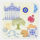 A minimal design of Greek symbols featuring its history, cuisine, and cats.