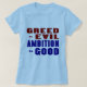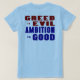 Large dark red letters read, "greed is evil". Large dark blue letters read, "ambition is good". Make your voice heard! It is ambition that makes us a great nation, and greed which destroys it. And a wonderful philosophy.