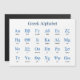 Lower and upper case greek letters with their names. Vector object with custom colours for title, letters and letter names. Custom background colour.