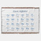 Lower and upper case greek letters with their names. Vector object with custom colours for title, letters and letter names. Custom background colour.