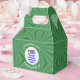 Gable favour box shows our angel wearing the flag of Greece for holiday party decorating or Christmas decor. The black haired angel is found inside a white, fractal circle of squiggly squares. The background is a green fractal squiggly squares. Add your own text or personalise with a name and the year. Make your Christmas party stand out with Greek flag angel gable favour boxes for your guests.