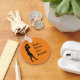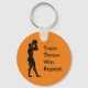 A round orange key chain with a graphic of a basketball player preparing to throw a ball in Greek Art style with the words "Train. Throw. Win. Repeat." Definitely the universal winning formula for any sportsman.