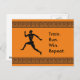 A postcard with a graphic of a running athlete in Greek Art style with the customisable words "Train. Run. Win. Repeat." and Greek Art borders. Definitely the universal winning formula for any sportsman. Talk about stylishly sporty!