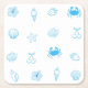 A cute pattern of beach symbols like crabs and hibiscus, and outlines of seashells, cherries, strawberries, and ice cream. This summer blue and white design is a perfect gift for beachcombers, travelers, and vacation lovers.