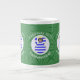Jumbo coffee mug to help you celebrate Christmas with this black haired angel dressed in the Flag of Greece. The Greek angel flies in the centre of a white, fractal, circle of squiggly squares set in a background of green squiggly squares. Add your name, or the name of someone else, if giving as a gift, to personalise. Customise by changing the ?? to a year of your choice to create a mug. Designed to augment your Christmas decor this holiday season. Design shows on three sides. Change the font and/or colour of the name, holiday or year by using the "edit design" option.