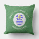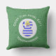 Green and white squiggly squares make up the background for this angel who wears the Greek flag. Outdoor pillow designed for your Christmas decor this holiday season. The flag of Greece is blue and white. Personalise with a name for yourself or a gift. Customise with the year.