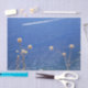 Longing to be on a Greek Island vacation on a hot summer day when the sun is sparkling on the blue Mediterranean Sea? In this stunning photo image, the sea off the coast of Rhodes is the deepest blue, with the white wake of a speedboat cutting across the waves. The photo was taken from the top of a cliff at Lindos, with pretty wildflowers growing along the edge.