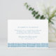 Share all the details for your wedding reception with this simple and stylish information enclosure card designed to coordinate with the Lea Delaveris Design Greek Wedding collection. Featuring a Grecian blue inspired tile pattern, this wedding reception invitation card features plenty of room for all the details of your celebration. The back features a solid blue that coordinates with the rest of the wedding suite collection. This simple design works well for a destination wedding, a Greek island wedding or any tropical blue location. Find more coordinating favours and decor in the collection.