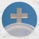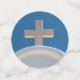 A cross on a white church against blue sky. The image was taken on the Island of Naxos, Greece.