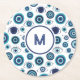 A coastal blue and white Greek evil eye patterned paper coaster perfect for beach house home decor this summer. Personalize the monogram and make this a unique housewarming gift for your loved ones. Please contact me if you need any help with customization.