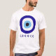 This Greek evil eye men's white summer t-shirt is perfect if you are Greek or if you love Greece. This design features a drawing of the Greek eye protection symbol with the word "Greece" in Greek style font.