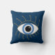 Greek Evil Eye With Lashes Blue White Gold Cushion