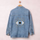Greek Evil Eye With Lashes Blue White Gold Denim Jacket
