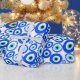Colourful blue and white patterned wrapping paper, featuring the symbolic Greek Eye. Proclaimed to be a protection from evil. Seen throughout many countries including Greece and Turkey.