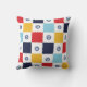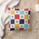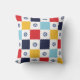 Colorful, bright squares, dark blue, sea blue, red, yellow, a Greek eye on the white patches.