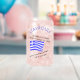 Personalised beer or can glass features a waving Greek flag and words reading, "The blood of Hellas flows through my veins. And sometimes...its ouzo." Glass is fun for a laugh or for toasting on Oxi Day or anytime. Add a name and create a personalised gift. Cool addition to a home bar or housewarming gift. Fun to use at friend or family reunions.