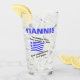Waving Greek flag and words reading, "The blood of Hellas flows through my veins. And sometimes...its ouzo." Fun for a laugh on Oxi Day or anytime. Add a name and personalise this tall glass.