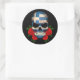 Greek Flag Skull with Red Roses Classic Round Sticker