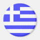 The flag of Greece shows on a round magnet here in nine blue and white alternating stripes. To represent Eastern Orthodox Christianity, there is a cross in the upper right side (hoist side). A perfect way to share your love of all things Greek on Oxi Day or anytime. The image here takes up the entire design space, using a bit of artistic license to make the flag look its best on each item. The flag was officially adopted as a symbol of Greece on January 13, 1822 at the First National Assembly at Epidaurus. Traditional legends say the stripes represent the number of syllables (nine) in the Greek words for FREEDOM OR DEATH. Others say they represent the letters in the Greek word for FREEDOM. Others suggest that each stripe represents one of the nine Muses of mythology. The blue and white colours are suggested to represent the colours of the Greek sea and sky. Either way, it makes for a beautiful flag that will always look nice anywhere you take it.