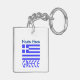 Keychain features the Greek flag with the word, GREECE, below in blue. The flag shows blue and white stripes with a blue and white cross in the upper right area. Above it, add a name, in blue letters, for a personalised touch or create a customised gift. Fun to take to family reunions, travel groups, and sharing your love and pride in your heritage. Fun for celebrating Oxi Day.