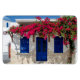 Quintessential Greek Island Vibes with magenta bougainvillea, blue doors and shutters, and a blue and white church - you can't get more of the typical Cyclades Greek Island feel than this scene, the photo taken on the island of Antiparos.