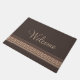 Meander Elegant, classical Greek key border ornament design with "Welcome" text and geometrical stripes decoration on dark brown background. Great gift idea for Birthdays, Christmas or just to surprise your loved one. It's easy to personalise it and change the background colour and the text to add different one to the design with your choice.