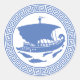 Classic Greek key design with Greek sail ship and playful dolphins.