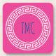 Greek Key INITIALS College Sorority Pink Round Coaster