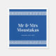 Greek key meander border wedding party napkins. Custom Mr and Mrs paper napkins for newly weds. Classy typography template with chic Greek fret pattern lines for married couple. Add your own surname of new bride and groom. Stylish lettering with date of marriage. Chic disposable party supplies and accessories for wedding, engagement, bridal shower, anniversary, dinner party, rehearsal dinner, reception, cocktail hour, i do BBQ, brunch, reception, celebration and more. Available in white and ecru colour and different sizes from small to big. Change quantity to get the cheapest bulk price. Beautiful letters with date of marriage. Add your own background colour i.e. blue. Transfer this design to any other product on Zazzle. Luxury design table decorations.