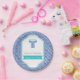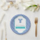 Greek key pattern and blue, aqua column Grecian wedding paper plate featuring a frame with blue and aqua outline, a border of Greek key or Meander or Greek fret pattern in blue and white, a turquoise banner and a blue, aqua Greek column. Text in grey. This elegant, modern design with vintage and ancient elements is perfect for a Greek and/or Grecian wedding theme regardless where it takes place in Greece or elsewhere, a bridal shower, reception, engagement, or anniversary party.