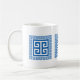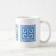 Mug with Greek key (Meander) pattern elegant blue and white design with key border to match. This design of the famous and popular Greek pattern of the continuous line can be edited to change its colour if you like. You can also add a background colour to the design by editing it.