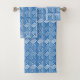 Greek Key Pattern, Cerulean Blue and White Bath To Towel Set
