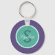 Change your name and monogram and on this purple square spiral pattern keychain.