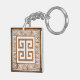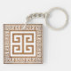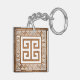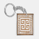 Keychain with Greek key (Meander) pattern elegant white design with key border to match on brown ancient Greece style background. This design of the famous and popular Greek pattern of the continues line can be edited to change its colour if you like.