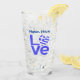 Drinking glass features a heart shaped flag of Greece used for the O in the word LOVE. LOVE shows in blue letters. Above is a place for your name. Add a personalised touch to your item or add some else's name for a custom gift. Toast Oxi Day!