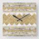 Greek Meander - Greek Key White Marble and Gold Square Wall Clock
