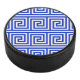 Greek Meander Key Squares Pattern Blue Hockey Puck