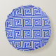 Greek Meander Key Squares Pattern Blue Round Cushion