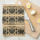 Greek Mediterranean Arabesque Pattern Brown Tea Towel