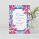 This wedding invitation features a painting of the mediterranean greek with blue and pink flowers. Easily edit *most* wording to meet your event needs. You can change the background colour and add your own photo to the backside.