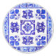 "Greek mosaic: Cobalt and White" refers to a mosaic art piece featuring cobalt blue and white colours, often found in Greek cultural contexts.
