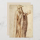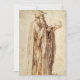 Philosopher (c. 1495-1500) by Michelangelo (1475–1564) is a vintage Renaissance Era fine art portrait painting. A portraiture sketch by Michelangelo in pen and brown ink of a scholar, a deep thinker lost in thought. A study drawing featuring a professor, an old man with a long beard wearing a hat and robe and holding a human skull thinking.