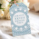 Elegant Greek or Roman Toga party gift tags featuring a minimalist Greek meander pattern in blue. Customisable product for a memorable celebration. Perfect for your Ancient Greece or Ancient Rome-themed weddings, engagements, graduation parties, anniversaries, save the dates, bachelorette and birthday parties.