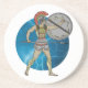 Greek warrior in full battle gear and in full colour against a large lightning lit moon ready to fight.Clik customise to change background colour or add text .