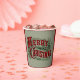 Green and red 1876 Merry Christmas Paper Cups for holiday parties.