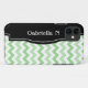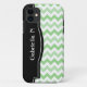 Stylish iPhone 5 case designed with a 2-tone green & white chevron zigzag pattern, a black frame over the left side, and personalised with your name or custom text in white across the black frame. This design is perfect for vertical and horizontal use of the iPhone 5.