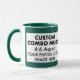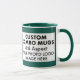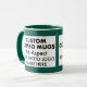 HUNTER GREEN 4:6 landscape aspect ratio double image frame custom Combo Mug for photo or logo, 11 oz., 3.2" diameter x 3.8" high, with HUNTER GREEN background double image frame (two individually customisable design areas) providing maximum coverage of the mug in HUNTER GREEN. See store for more templated font options. The background colour has been chosen to closely resemble the combo mug inside and handle colour but may not match exactly, due to the difference between printing and enamel tones.
