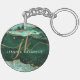Green Agate Geode Gold Glitter Script Monogram Key Ring